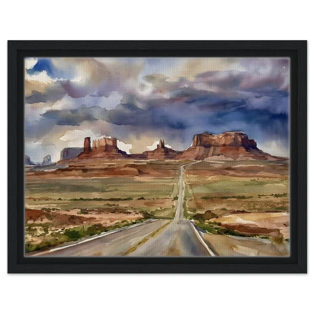 Monument Valley Framed Canvas - Watercolor Road Trip Art